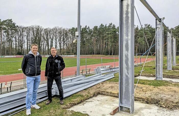 Scheeßel – Was 2018 als Idee für einen einfachen Unterstand begann, ist mittlerweile zu einem ambitionierten Gemeinschaftsprojekt gewachsen: Die Sportvereine SV Rot-Weiß Scheeßel und TV Scheeßel bauen gemeinsam eine überdachte Zuschauertribüne im Stadion Waidmannsruh. 104 Sitzplätze, barrierefreier Zugang, eine moderne Stahlkonstruktion mit feuerverzinkten Elementen – das Vorhaben soll das in die Jahre gekommene Stadion deutlich aufwerten. Die Bauarbeiten haben kürzlich begonnen, die Fertigstellung ist für Mitte Mai geplant. Doch die Finanzierung hat es in sich.